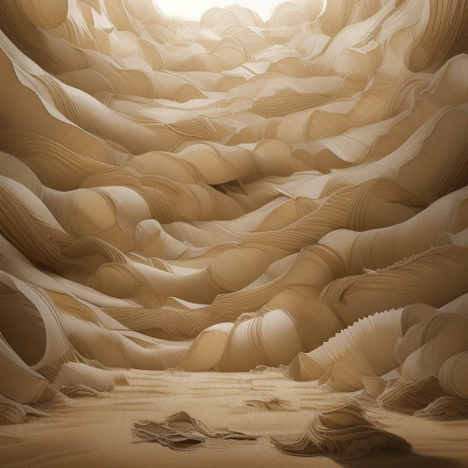 An epic illustration of a gigantic long line of connected empty paper rolls bursting up out of the ground like a sandworm, in a huge spray of sand and loose shreds of toilet paper.