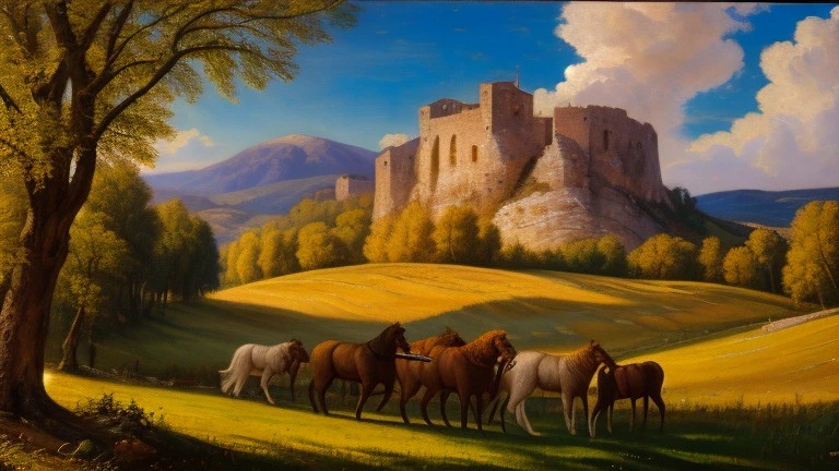 Shepherds' orgy in the Roman countryside of the seventeenth century according to the style of Nicolas Poussin.