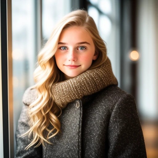 21yo girl, portrait, smirk, window, wint...