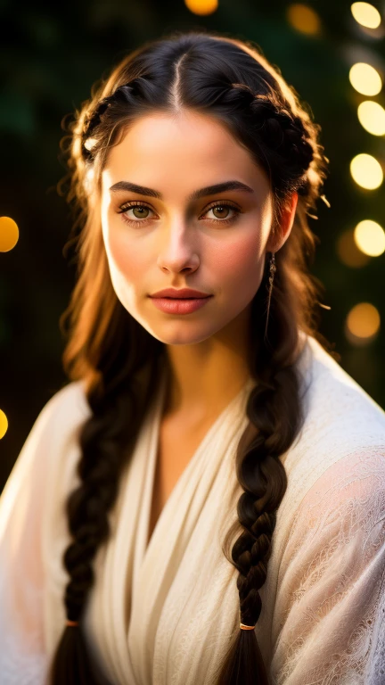 Young she was and yet not so. The braids of her dark hair were touched by no frost; her white arms and clear face were flawless and smooth, and the light of stars was in her bright eyes, grey as a cloudless night; yet queenly she looked, and thought and knowledge were in her glance, as of one who has known many things that the years bring , Arwen, daughter of Elrond, in whom it was said that the likeness of Lúthien had come on earth again; and she was called Undómiel, for she was the Evenstar of her people