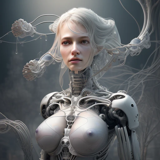 complex 3d render ultra detailed of a beautiful porcelain profile woman android face, cyborg, robotic parts, 150 mm, beautiful studio soft light, rim light, vibrant details, luxurious cyberpunk, lace, hyperrealistic, anatomical, facial muscles, cable electric wires, microchip, elegant, beautiful background, octane render, H. R. Giger style, 8k, best quality, masterpiece, illustration, an extremely delicate and beautiful, extremely detailed ,CG ,unity ,wallpaper, (realistic, photo-realistic:1.37),Amazing, finely detail, masterpiece,best quality,official art, extremely detailed CG unity 8k wallpaper, absurdres, incredibly absurdres, , , robot, silver halmet, full body, sitting