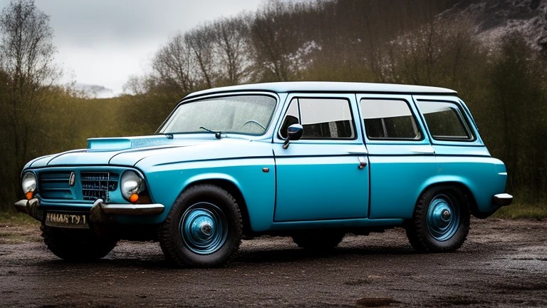 old all terrain color azure sovietic car, chrome,
