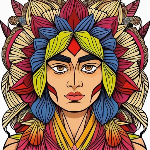psychedelic portrait of an ancient mapuche.