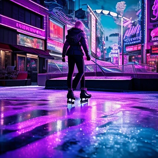 Rear view ice skating on frozen solid flat ice lake background ((3d)), ((ultra-realistic)), ((action poses)), ((detailed background)), ((detailed bodies)), ((detailed faces)), ((detailed hands)), ((surrealistic)), ((highest resolution)), ((highest quality)), ((clothed)),