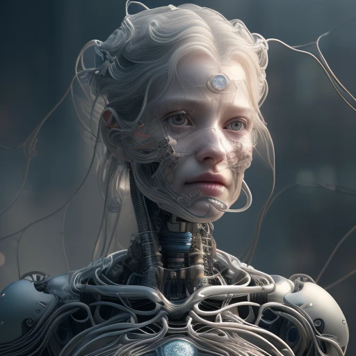 complex 3d render ultra detailed of a beautiful porcelain profile woman android face, cyborg, robotic parts, 150 mm, beautiful studio soft light, rim light, vibrant details, luxurious cyberpunk, lace, hyperrealistic, anatomical, facial muscles, cable electric wires, microchip, elegant, beautiful background, octane render, H. R. Giger style, 8k, best quality, masterpiece, illustration, an extremely delicate and beautiful, extremely detailed ,CG ,unity ,wallpaper, (realistic, photo-realistic:1.37),Amazing, finely detail, masterpiece,best quality,official art, extremely detailed CG unity 8k wallpaper, absurdres, incredibly absurdres, , , robot, silver halmet, full body, sitting