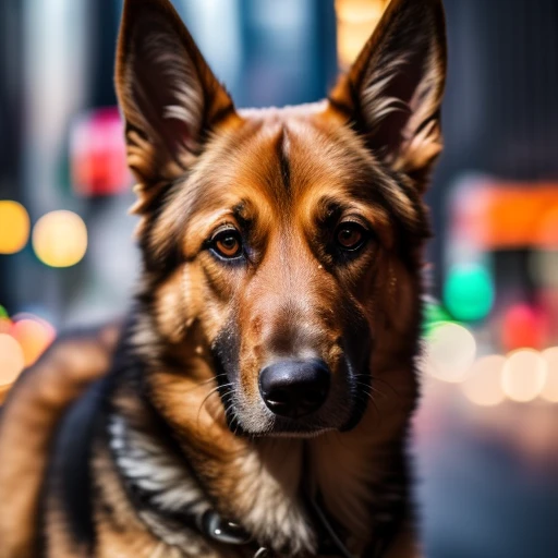 Extremely-detailed photorealistic portrait of German Shepherd, ((background - New York city))