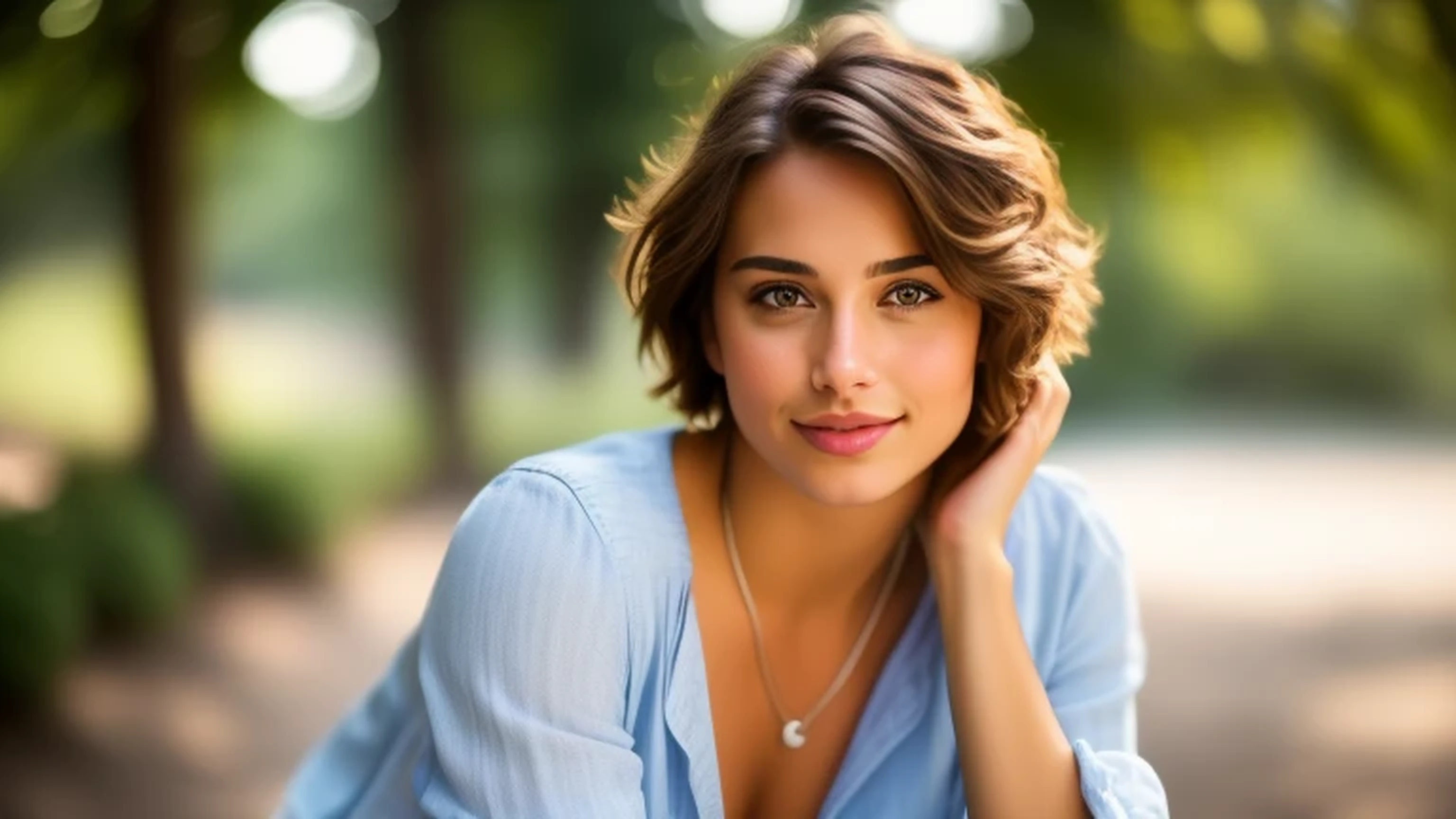 (Gorgeous French girl), open shirt, short hair, smiling, see-though