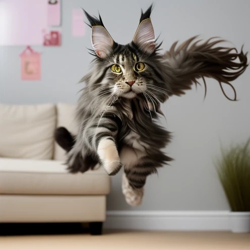 grown up maine coon jumping