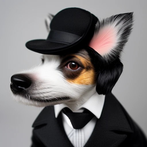 (black and white fur), jack russell terrier dog dressed as a private detective in the style of tintin cartoon character