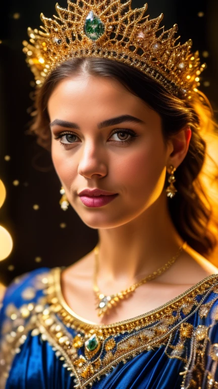 ((8K UHD 50mm extremely sharp-focus mid-range portrait)) of a jeweled gold crown, covered with cobwebs and spiders, Royal Indigo, Bright,