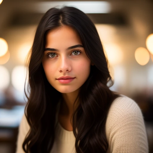 beatiful young, student girl who meets people. black hair, assistant teacher, in the school , happiness,