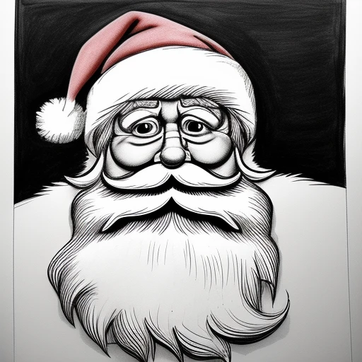 friendly black and white line drawing of santa