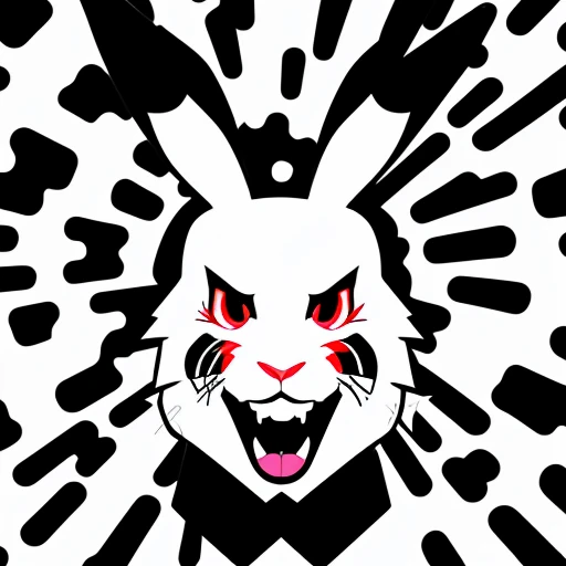 crazy rabbit face minimal black and whit...