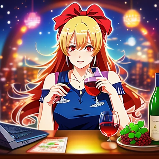 Birthday postcard, wine, girls, computer