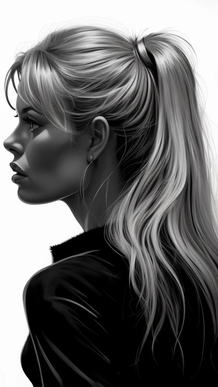 Brigitte Bardot looking away profile portrait, Figurative, Ink, Realism, Rough, Midnight black, Underlit, Film noir, Sean Gordon Murphy