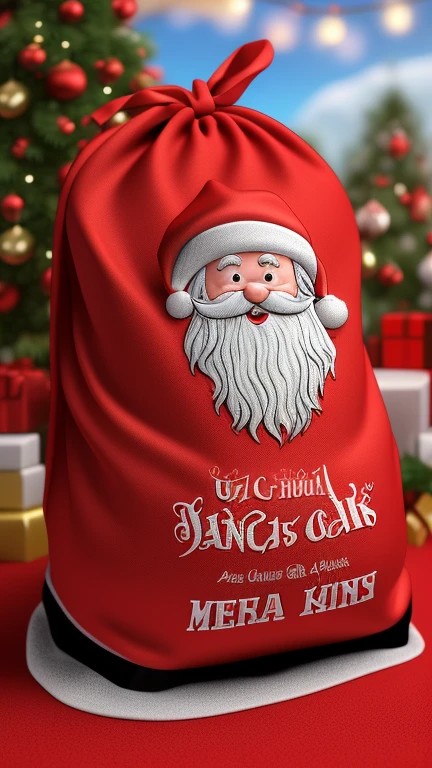 Santa's Big Red Sack Full of Gifts Cartoon, ((ultra detailed)) ((detailed material)), ((detailed background)), ((highest resolution)), ((highest quality)), ((64k)), ((sharp focus)), ((3d))
