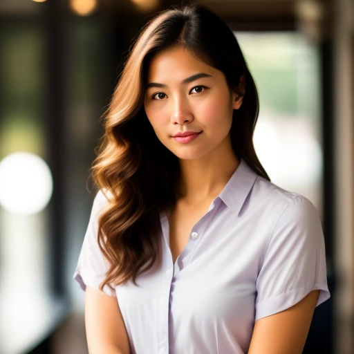 midshot portrait, natural light, an attractive korean woman in her 20's, Preppy Style, Office, taken using a Canon EOS R camera with a 60mm f/4 lens, f/2.2 aperture, shutter speed 1/200s, ISO 300, Hyper Realistic Photography, Hyperdetail, Ultrahd, Color Correction, hdr, color grading, 8k --ar 4:5 --q 2