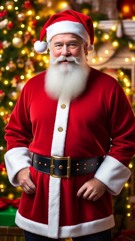 Santa Claus, sometimes referred to as Father Christmas, brings joy to children at Christmas time. Displayed with a beard and red festive hat. in 3d, ((realistic)), ((action poses)), ((detailed background)), ((detailed bodies)), ((detailed faces)), ((detailed hands)), ((highest resolution)), ((highest quality)), ((clothed))