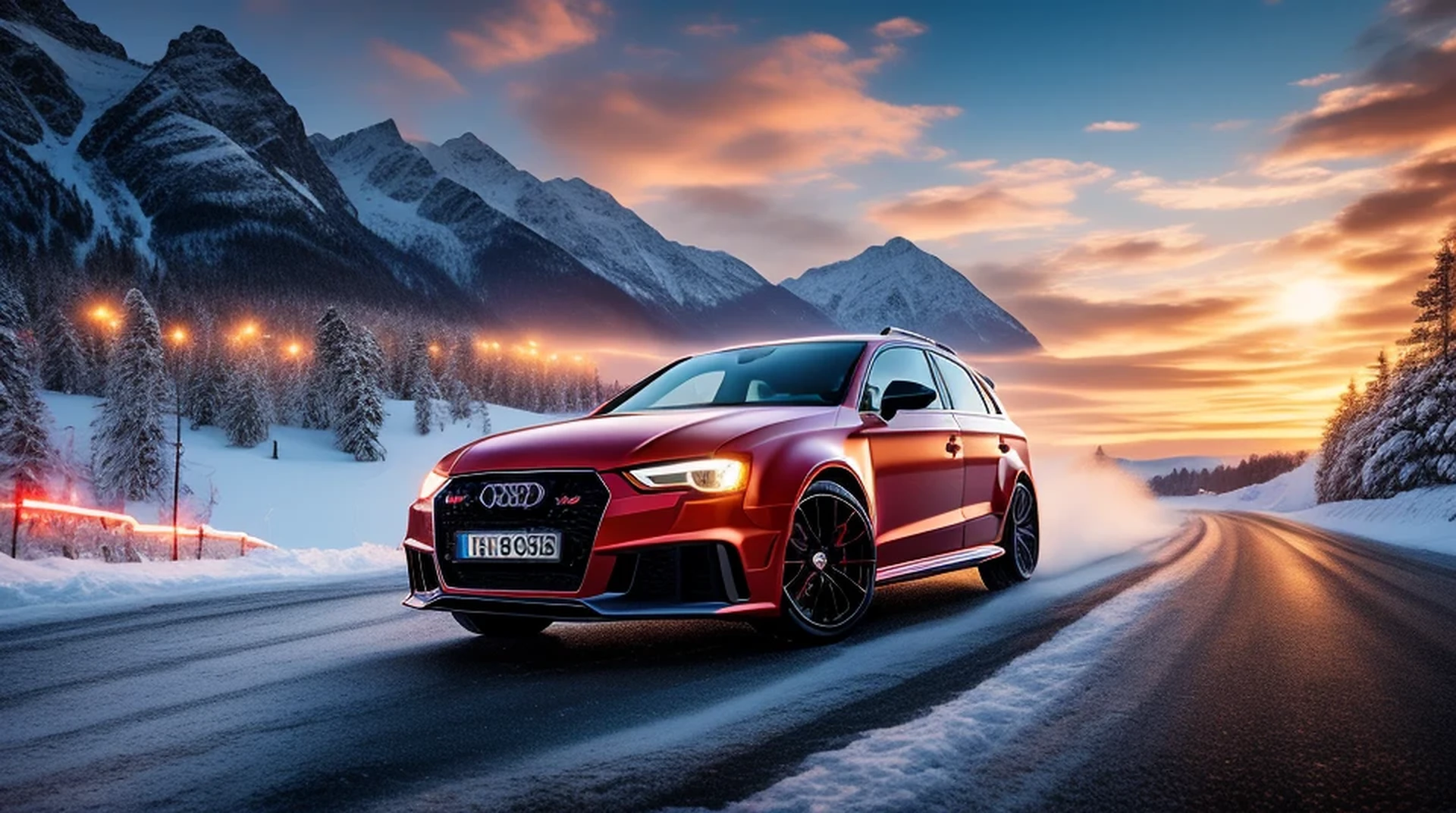 desktop, dark theme, dark color, audi rs3, red, red color car, swiss mountains, many snow, rally montecarlo