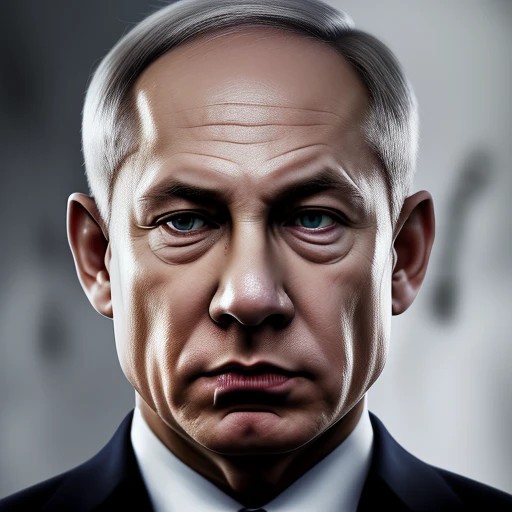 Benjamin Netanyahu inside putin, vertically split, split ((vertically)), Benjamin Netanyahu inside putin, close up portrait, blood, red eyes, aggresive, screams, toxic, hitlers head inside putins head, blood in mouth