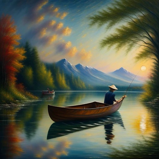 Man fishing in a boat on a lake