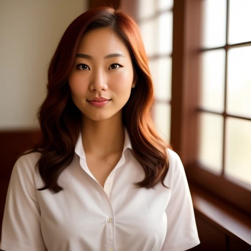 midshot portrait, natural light, an attractive korean woman in her 20's, Preppy Style, Office, taken using a Canon EOS R camera with a 60mm f/4 lens, f/2.2 aperture, shutter speed 1/200s, ISO 300, Hyper Realistic Photography, Hyperdetail, Ultrahd, Color Correction, hdr, color grading, 8k --ar 4:5 --q 2
