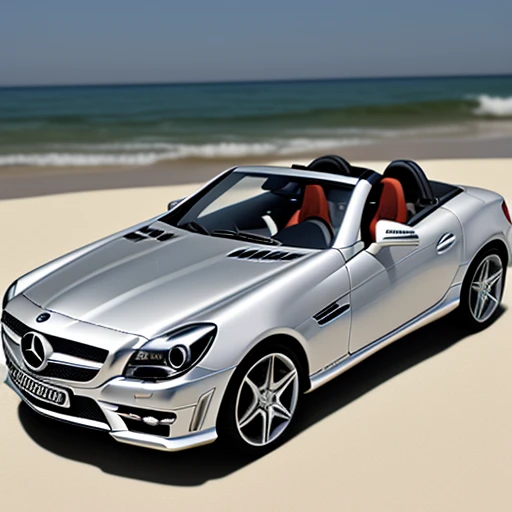 mercedes cabrio SLK350 silver model year 2010 at the beach realistic