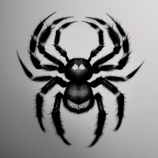 Create a detailed forearm tattoo sketch of a realistic spider in black and white art style. The spider should be drawn with a high degree of detail, highlighting its texture and anatomical features. The tattoo should cover a significant portion of the forearm, showcasing both the spider itself and its surroundings, which may include webs or other natural elements. The sketch should be done in a style suitable for the tattoo, with an emphasis on contrast and shadows to convey dimension and realism to the image.
