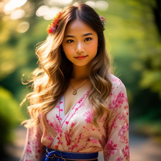 美しい若い日本の女の子が富士山を背景にデニムを着ています
