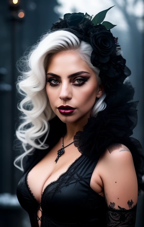 Gorgeous lady gaga is gothic, busty, horror vampyr style, cimetiere
