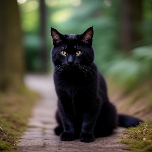 "玄関での黒猫、日の出"