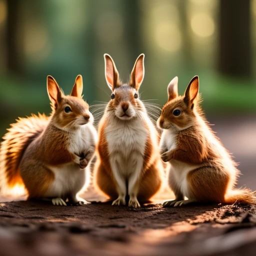 3 animals : red rabbit, hedgehog, squir...