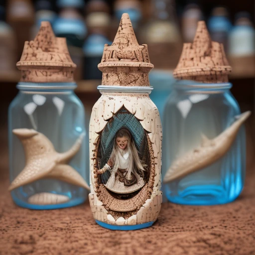 best quality, intricate details, full body,(cork, jar:1.2) (white shoes:1.2) gawr gura, shark girl, shark tail, shark print, blue hoodie, sharp teeth, animal hood, shark hair ornament, (in bottle,in container:1.3)