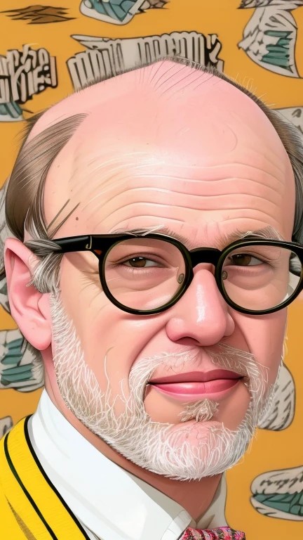 ((((balding)))),with ((white hair)),(((style of wes anderson cartoon))),(((male pattern baldness))), ((Clean Shaven)),[[[no beard]]],((clear lenses in wayfare glasses)),,man in his 50s, wearing with a stocky build ,fair complexion