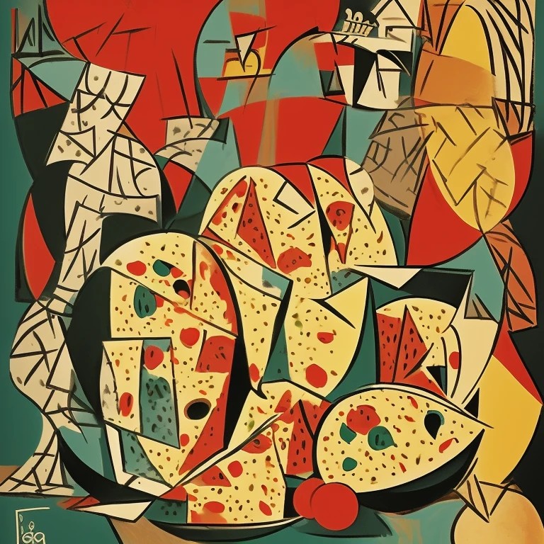 poster, panettone on table, Picasso style
