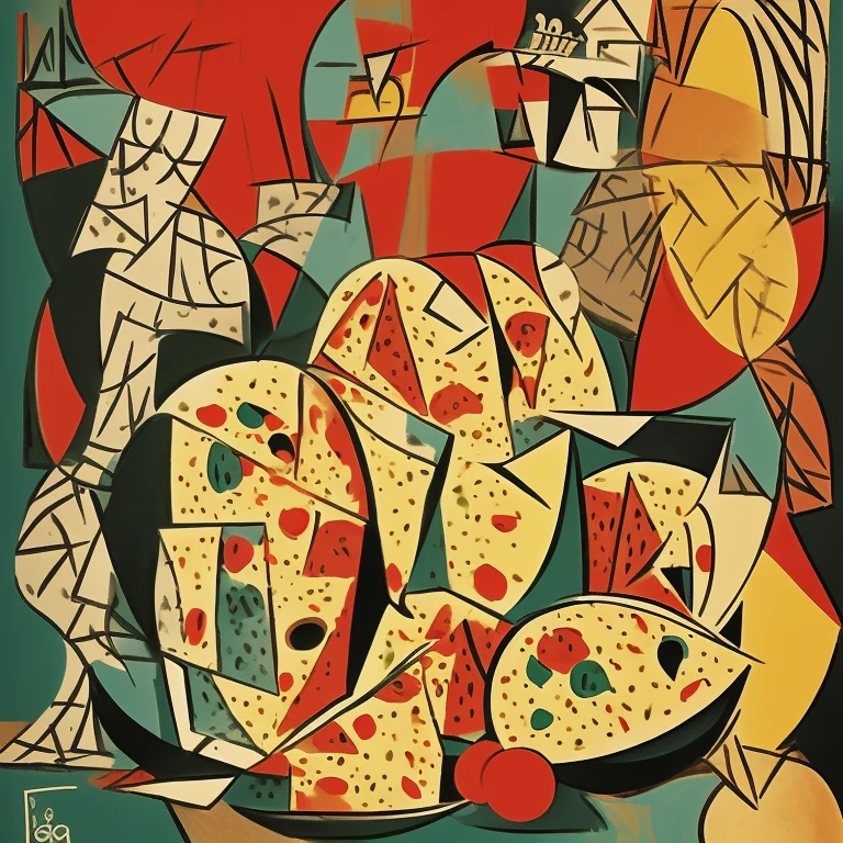 poster, panettone on table, Picasso styl...