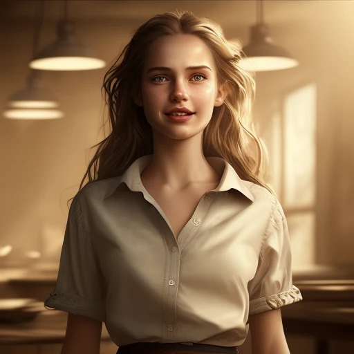 best quality, masterpiece, (photorealistic:1.4), 1girl, light smile, shirt with collars, waist up, dramatic lighting, from below