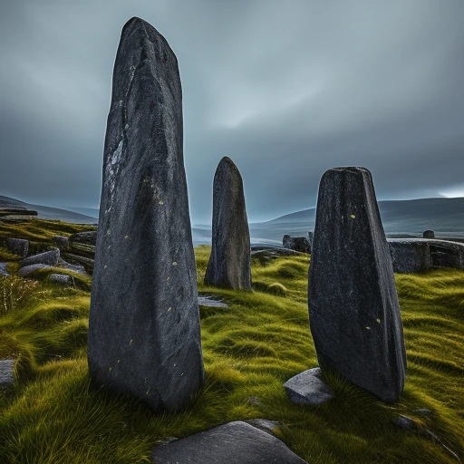 Megalithic Standing Stones Ireland ((ultra detailed)), ((detailed face)), ((detailed engraving)), ((detailed background)), ((highest resolution)), ((highest quality)), ((64k)), ((sharp focus)), ((3d))