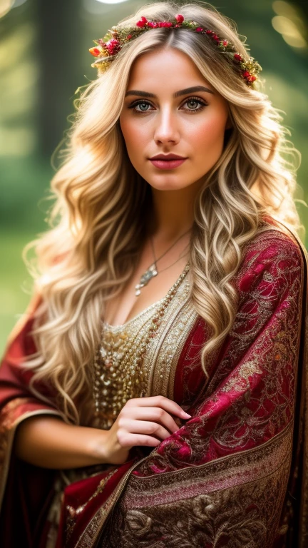 Ritratto di una donna nativa polacca, vestita in abiti tradizionali polacchi, con uno sfondo che riflette la cultura e il paesaggio della Polonia