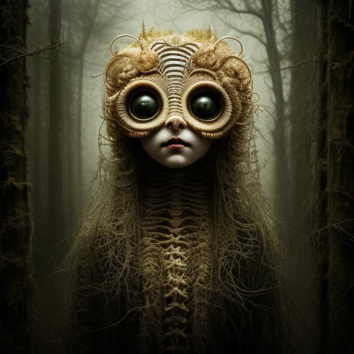 creepypasta cryptid creature, pale yellow, strange, horror, exaggerated features, twisted, distorted, elongated, ethereal, unnatural, otherworldly, insectoid, inhuman, pop surrealism, mark ryden, benjamin lacombe, dave mckeane