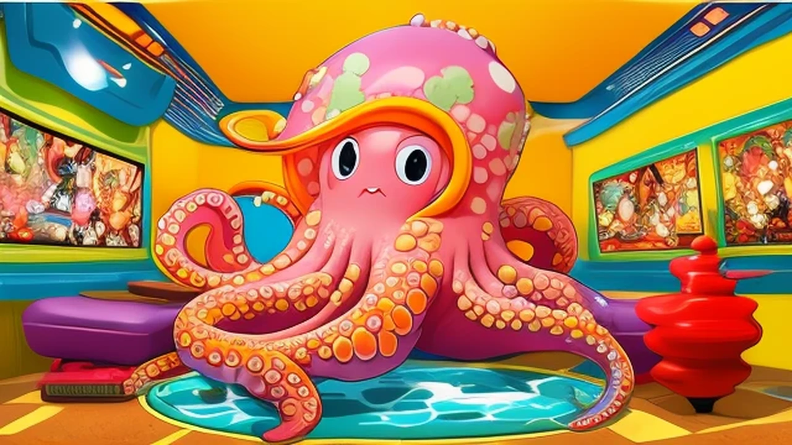 an octopus makes us charming. He watches television.