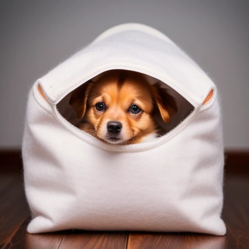 little pet dog in white wool bag four le...