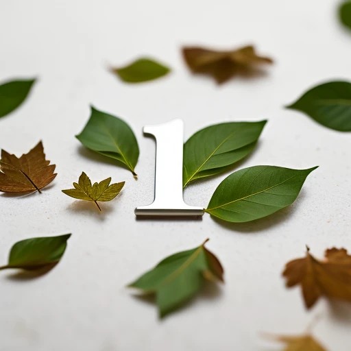 the number 1 made out of leaves, on a wh...