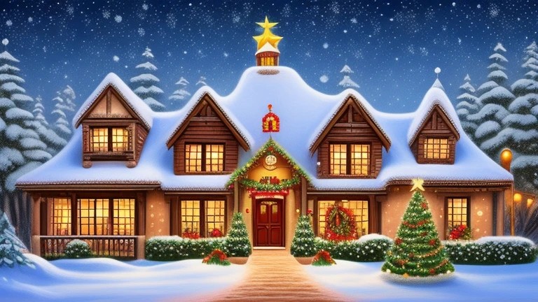 Draw a Disney-style Christmas card with ...