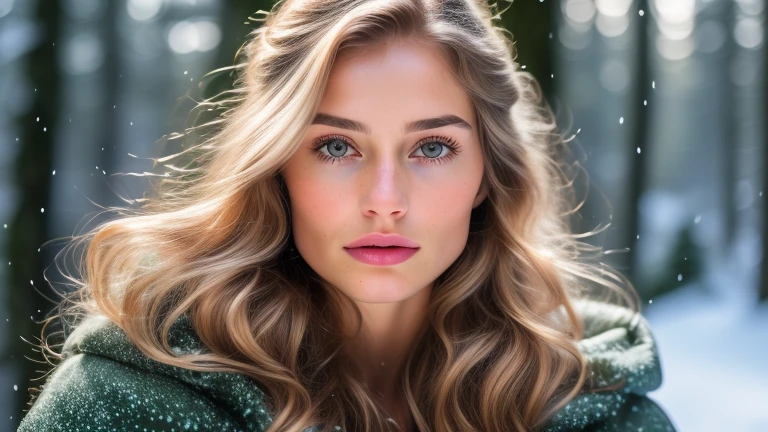 women in a winter forest ((Photorealistic)), ((Detailed Face)), ((High Cheekbones)), ((Detailed Hands)), ((Feminine Hands)), ((Detailed Body)), ((Action Poses)), ((8k)), ((uhd))