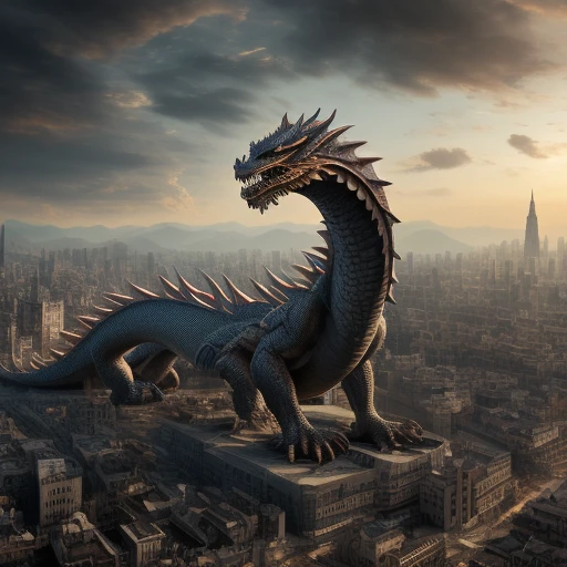 masterpiece, best quality, detailed, day lighting, city from above, male, solo, all fours, from above, looking up, dragon,