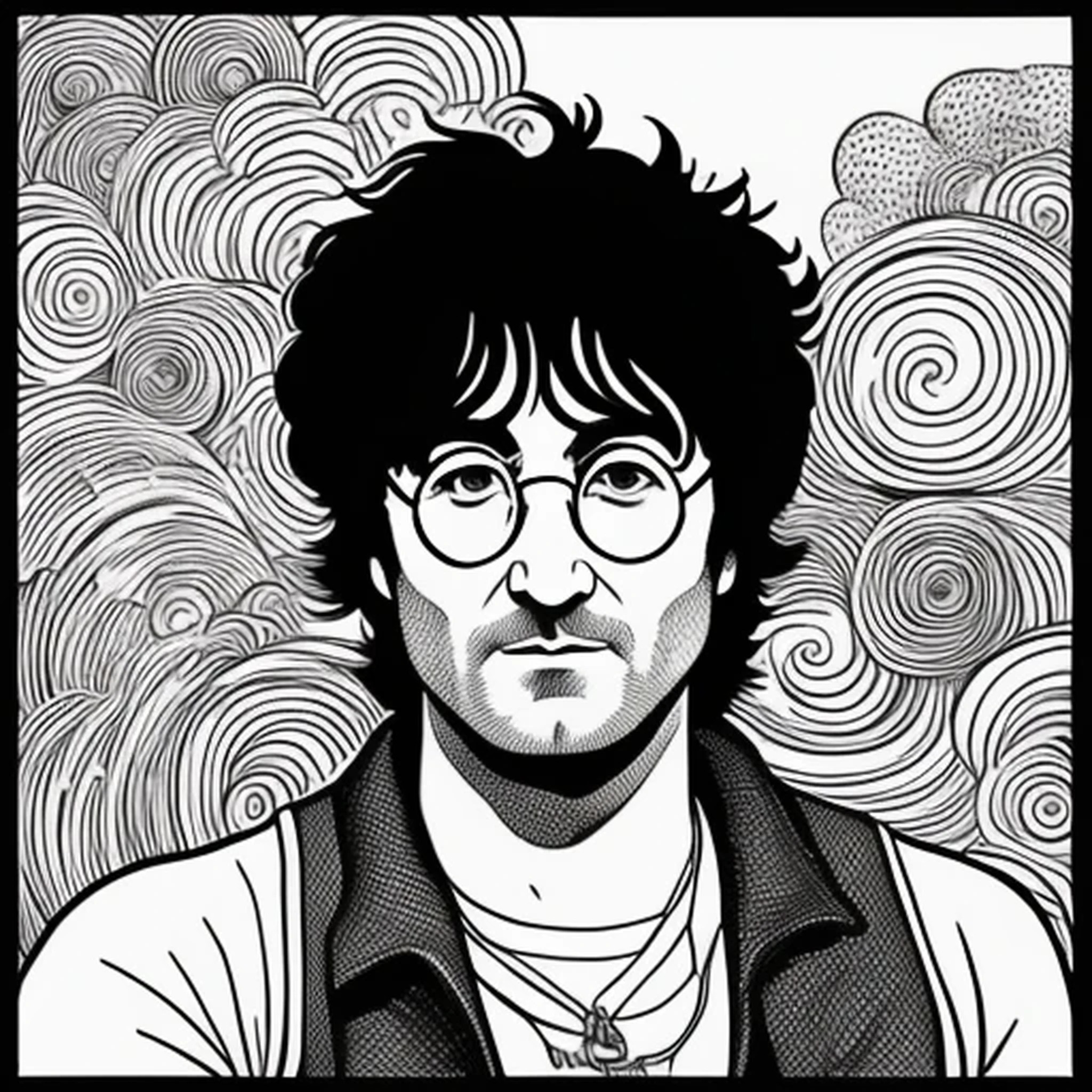 John Lennon, black and white brush, minimalist, comic