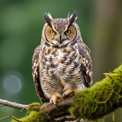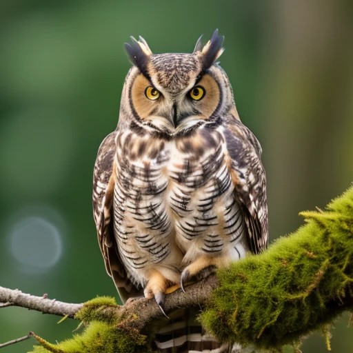 Great Horned Owl (Bubo virginianus) - Recognizable by its tufts of feathers resembling horns and deep hooting voice.
