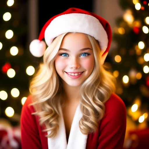 Smiling blonde Santa girl with big decol...