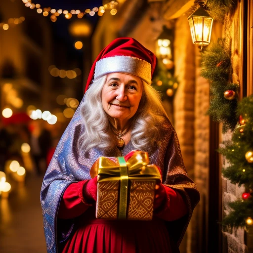 Befana is an old woman or witch who delivers gifts to children throughout Italy on Epiphany Eve (the night of January 5) in a similar way to Santa Claus or the Three Magi Kings.